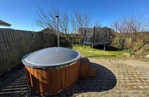 The hot tub is heated with wood, and wood can be purchased on-site. There is also a fire pit – perfect for making stick bread or roasting a sausage in the garden to end an active day.