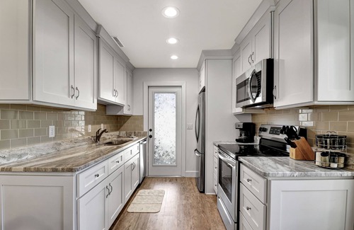There is a brand new king bed in the master and a queen as well a double in the guest bedroom, providing lots of sleeping options to families. Each bedroom has its own TV in addition to the large living room smart television. The large dining table can accommodate your entire family for shared meals, and there is also a quaint cafe table in the Carolina Room for quick snacks or morning coffee. Enjoy cooking out on the new propane grill on the patio overlooking the golf course.