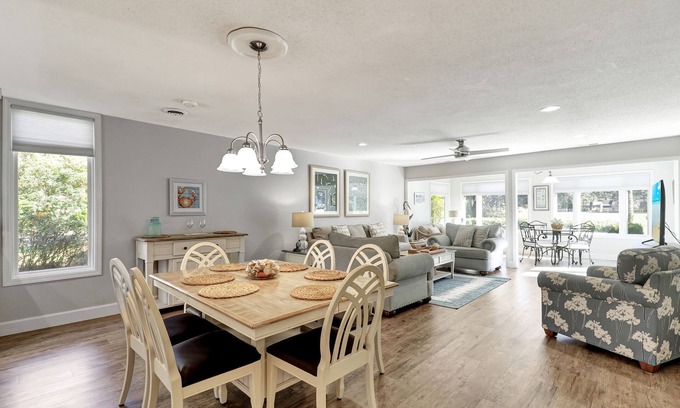 Lots of living space and comfort are the key to a relaxing family vacation, and this property delivers. This quiet cul de sac is near everything-walk to the Golf Clubhouse for dinner at Frasier's Tavern or to Harbour Town to take in the marina or a cocktail overlooking the sunset from the Quarter Deck. Sea Pines Center is also closeby, featuring the resort's own farmer's market and unique shopping and dining opportunities.