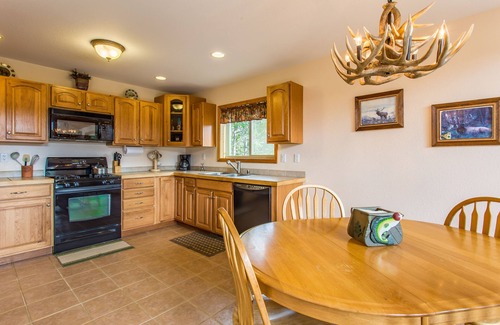 Elk Spring Cabin is a secluded mountain getaway! You can feel completely isolated with no other homes in view. It sits on a hill overlooking the spring fed pond below with awesome Pike's Peak views as a backdrop. It is surrounded by pine and aspen trees on 35 fenced and gated acres. Although it feels remote, it is only 1 1/2 miles from US Hwy 24 on a well maintained County Road and only 30 minutes to Colorado Springs or Cripple Creek and very convenient to all local attractions. You can hike the acreage or relax and enjoy the beautiful back deck and patio area. The views of Pikes Peak from the living room, both bedrooms and the back deck are spectacular and you may experience an occasional deer or elk that wander through the property. This cabin shares the same property with Mountain Sun Cabin yet they are not visible from each other. Both cabins can be rented together for larger groups.