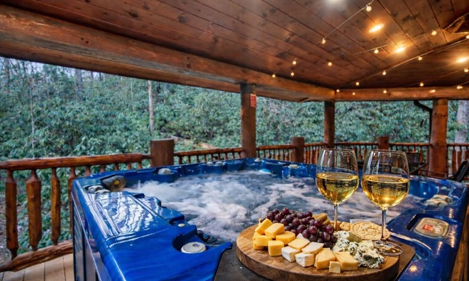 The cabin is located in a quiet mountain setting near the Smoky Mountains, offering easy access to hiking, waterfalls, scenic drives, and nearby attractions while remaining secluded and private.