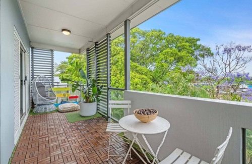 Property description This spacious 2-bedroom apartment offers a beach-house vibe in the heart of Hamilton. With access to a private rooftop, communal BBQ area, private parking, and a cosy living area, it’s the perfect place to relax after a day exploring Brisbane. The apartment comes with essential amenities, including air conditioning, a well-equipped kitchen, and a dining area. Self-check-in, with easy access to everything you need for a comfortable stay. The space Step into this spacious 2-bedroom apartment, offering a relaxed beach-house vibe perfect for unwinding. The living area features comfortable seating, a Smart TV, and a dining space for four. Enjoy a fully-equipped kitchen with a gas stove, electric oven, microwave, and dishwasher. The two bedrooms feature cozy beds, ample storage, and an en-suite attached to the master. Enjoy time outdoors with two balconies and a private rooftop—ideal for enjoying Queensland's sunny weather. The apartment is fully air-conditioned, with additional ceiling fans for comfort. Situated in a tranquil neighborhood, you will find free street parking as well as an allocated secured parking space for two cars (tandem). The building is accessible by stairs (4 flights). The property is close to local amenities, restaurants, and cafes.