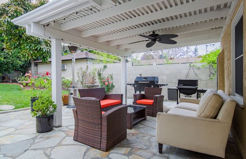 Our charming 2-bedroom house is located in a quiet tree lined family friendly neighborhood, 5 mins from LAX and a short drive to beaches, Sofi Stadium, and the Forum. It is perfect for sports fans, travelers, and families who want to be close to LA's attractions. The house features cozy rooms, a backyard oasis with a grill, and convenient proximity to the West Field Mall.