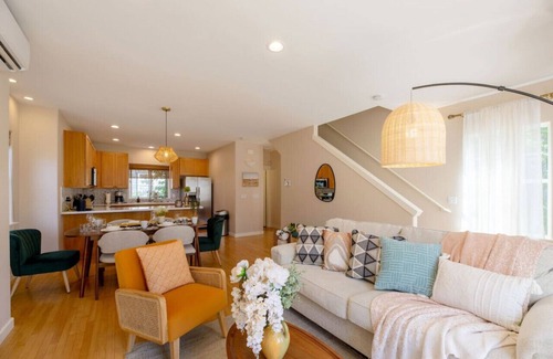 The home is tastefully decorated and fully equipped with all the amenities you need for a comfortable stay.This is a 3-level single family house with some steps to the entrance.