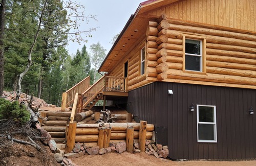 This top of the mountain cozy log cabin is tucked nicely into the trees, but still close enough to tourist destinations like Pike National Forest, Mueller State Park, Manitou Incline, and more.