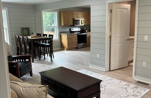Located midway between Cashiers/Highlands and Bryson City/Cherokee, this property is at the intersection of comfort and convenience. It is steps away from the Tuckasegee River, a fly fisherman's dream, and a short drive from hiking and biking trails, numerous waterfalls and lakes, antique shopping, the Blue Ridge Parkway, the Jackson County Ale Trail, Oconaluftee, Harrah's Casino and so much more. This newly renovated, 2-Bedroom Apartment features a well appointed Kitchen, with plenty of workspace, and a large dining and living area conducive to relaxing and enjoying meals together. It also includes a sunroom with beautiful wood ceilings that cast reflections off the river and ample parking for 2 vehicles. Come relax and take in some fresh air, with a stay at our little peace of heaven, tucked away in the Western North Carolina Mountains, less than 2 Miles from Western Carolina University's campus.