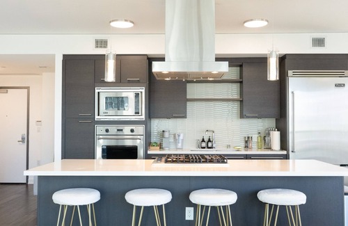 Penthouse luxury highrise with sunset and skyline views. Perfect for couples, families, remote workers and group trips to Southern California. Located in the heart of Orange County, just minutes from John Wayne airport, luxury shopping and restaurants. Our light filled & fully furnished 2 bedroom/2 bathroom is your home away from home. The Chef’s Kitchen is complete with Stainless Steel Viking Appliance, pots, pans & bakeware. The building amenities includes a pool, spa, clubhouse, bbq and gym.