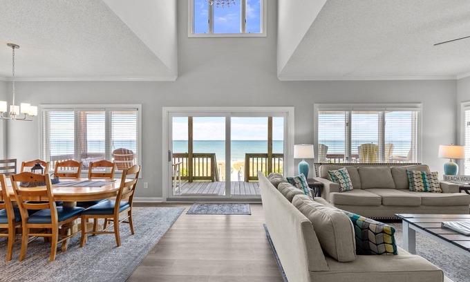 Welcome to Namaste at the Beach—a beautifully renovated oceanfront home in Kure Beach designed for relaxed coastal living. With sweeping ocean views, direct private beach access, and space for the whole family (including your pup 🐾), this home is the perfect setting for your next beach getaway.
