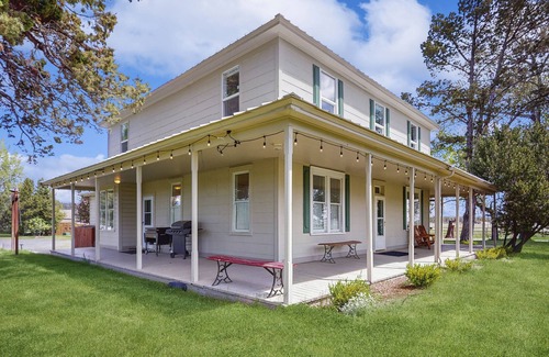 Experience authentic ranch living in our 130-year-old, featuring 5 bedrooms and 5.5 baths. Enjoy meals on the front porch with views of grazing cattle or fish in one of our stocked ponds. Visit the friendly goats, book a trail ride, or explore our 438-acre property. Relax in the hot tub or join us to feed the horses. Need more space? Ask about booking our additional houses on-site. Perfect for family retreats on a working cattle ranch.