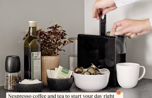 → Kitchen: Stove, oven, microwave, dishwasher, mini-fridge w/freezer, kettle, Nespresso machine + pods