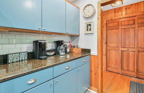 There is a large, screened in three-season porch with TV, ceiling fans, plenty of seating including an authentic German beer hall table/benches, festive lighting, gas firepit and a bar for entertaining and relaxing and long range mountain views. Additionally, there are two outdoor decks, both with mountain views, one on the lower level and one on the main level. Fully fenced side and front yard with direct access from the house. Central heating and A/C throughout the house. Main level outside deck has a propane grill and a brand new 6-7 person hot tub. The well-equipped kitchen has all modern stainless steel large appliances: dishwasher, microwave, electric stove/oven, coffee makers (a Keurig AND traditional coffee maker) and basic spices. The rustic farmhouse dining table seats eight comfortably. The living room has a gas fireplace , plenty of comfortable leather seating, a bistro table at which to enjoy your morning coffee and a 55" TV with Netflix.
