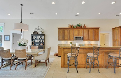 Inside, the vibe is clean, calm, and coastal. Think: granite countertops, stainless appliances, smart TVs in every room, and wide open space for gathering.
