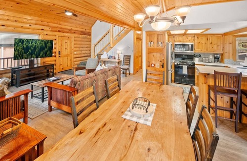 Nestled just steps away from the renowned Snow Summit Resort, this beautiful log cabin combines rustic charm with modern convenience. Enjoy the warmth of central heating and stay connected with ultra-fast Wi-Fi. Say goodbye to parking fees and crowded shuttles - the resort is at your doorstep.