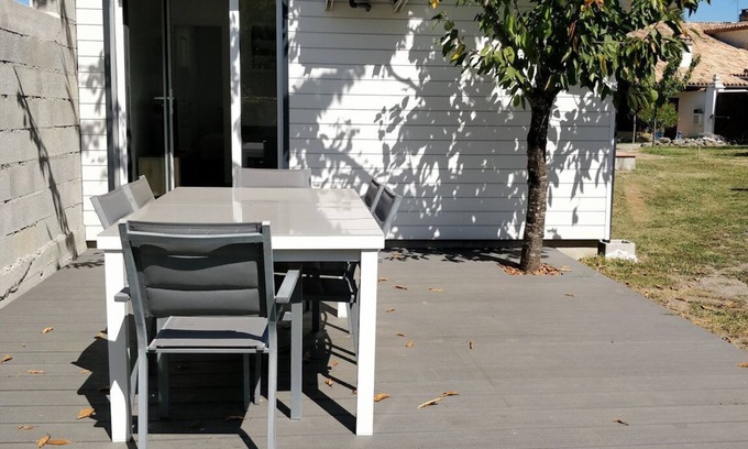 Located in Croignon, Aquitaine, this independent 30 m² studio can accommodate up to 4 people and includes a living room and a bedroom. You have a well-equipped private kitchen with an oven, refrigerator, and washing machine. The studio also offers private Wi-Fi, air conditioning, a television, and a private barbecue for your comfort.