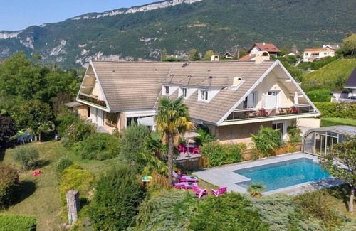 On a fully enclosed property of 3 500m² in a quiet and well-exposed residential area. Near the beach (1km), the spa town of Aix les Bains (6km) and its port (3km). Secure parking.