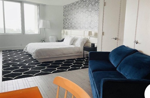 Beautiful studio within Walking distance from South Beach and Lincoln road with stunning sunsets , great happy hours, Yoga on Sundays . It's pretty much in the heart of South Beach ; close to malls, restaurants, great beaches . Standard resort fee is $52.00 per day for all amenities.