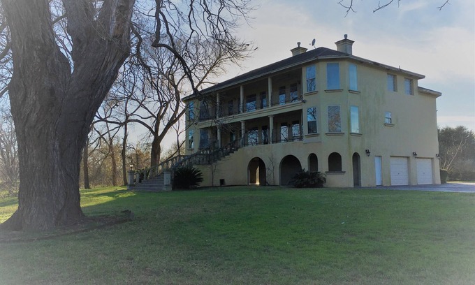Stunning Mediterranean Style Home on the Guadalupe River in Downtown Seguin is located in Seguin. Stunning Mediterranean Style Home on the Guadalupe River in Downtown Seguin provides accommodation, featuring Private Pool, Bedding/Linens, Wellness Facilities, among other amenities. This House features Private Pool, Bedding/Linens, Wellness Facilities, to make your stay a comfortable one.