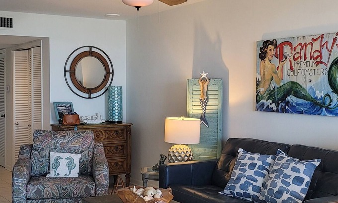 You will enjoy the laid-back ambience in our spacious 1-bedroom condo facing beautiful Perdido Pass with gorgeous direct beachfront views. You will have everything you need and more in our newly renovated 'Rest Nest'. If new and updated matters to you, you will love our Rest Nest. If beautiful beach views and balcony privacy matters to you, you will love our Rest Nest. If you are a "comparative shopper", you will love our Rest Nest. Our rates are great - often offering deals. We want your return rentals and your good word of mouth advertisement. If you are picky about cleanliness and small details, you will love our Rest Nest. We maintain and update regularly. Since obtaining the condo, we have put in new kitchen cabinets, granite countertops, new stainless appliances, new marble shower and vanity, new furniture. We have replaced nasty carpet with tile, our new queen size sofa bed is complete with a comfy memory foam mattress. In addition, we painted throughout and replaced bedding, towels, linens, décor and more. We also just replaced the AC unit (Mar. '24). The position of our condo offers more balcony privacy than most other 1 bedrooms in the building. Our condo is comfortable for 4 people. We are located in Central Orange Beach which is the best part of Orange Beach. Restaurants, shopping and Zeke's Landing Marina are all within walking distance. Diagonally behind us is Zeke's Landing where you can set up fishing trips, parasailing, paddleboard rental, dolphin cruises and more. Phoenix 7 is known for the many amenities such as tennis, pickleball, racquetball, indoor & outdoor pools, hot tubs, fitness room, sauna, grilling areas. You will be impressed with how well-maintained Phoenix 7 is compared to other complexes. Another big plus about Phoenix 7 is we have a low-density beach on our end of shoreline. This means more beach space during those most popular times of the year. This end of the beach widens since it is close to Perdido Pass. Watching the boats go in and out of the pass is another pleasure enjoyed by all ages. The dolphin cruise boats are often in front of our beach because even the dolphins love it! Whether you’re a first-time visitor or a seasoned beachgoer, you’ll find unmatched value and comfort at the Rest Nest. Skip the high fees of big rental companies and enjoy a stylish, affordable stay with everything you need and more. Don't forget your binoculars, the dolphins are out there!
