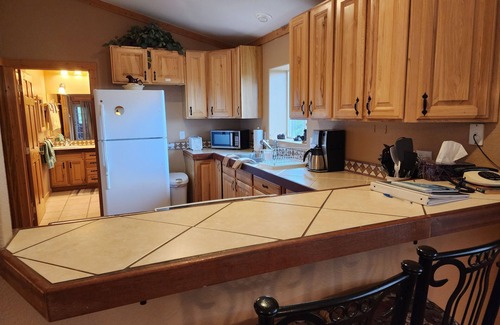 The lower level has two additional bedrooms, one with a queen bed and the other has a full bed. The lower level also includes a newly renovated full bath and family recreation room complete with foosball, TV and a queen sleeper sofa and walk out patio. A fully equipped laundry area allows you the convenience of a long-term stay without taking away vacation time.