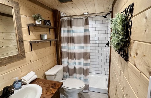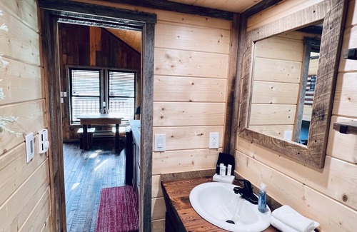 This tiny home sleep 5-6 and is located conveniently between Roaring River State Park and Eureka Springs AR. This gives easy access to hiking, trout fishing, as well as good food and entertainment. Also golf is close with Holiday Island and Cassville Golf Club which is just a short drive. Eagle Rock Marina is less than one mile away which offers boat rentals but if you want to bring your own boat we offer boat parking and charging on site.
