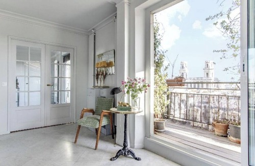 Live like a Parisian in this boutique two-bedroom Paris penthouse apartment, tucked behind in between Luxembourg Garden and Rue de Rennes, just minutes from Place Saint Sulpice and marché Saint Germain in the 6th district.