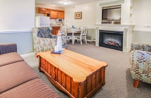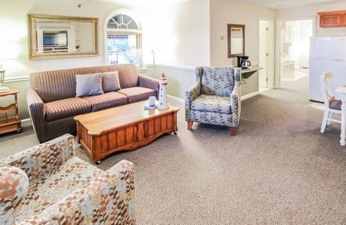 Luxury one bedroom suite with a whirlpool spa, a living room with a sofa sleeper bed, kitchenette, cable tv's and high speed internet. The resort has an indoor pool, sauna, exercise room, barbecue area, laundry facilities and is walking distance to the beach or take the resort's shuttle to the beach. Walk the beautiful "Marginal Way" along the coast and marvel at some magnificent homes along the way. Enjoy local cuisines at restaurants or a relaxing evening at the Ogunquit playhouse.