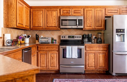 A sunny dining nook awaits you in the morning, in the fully stocked kitchen complete with cooking essentials such as oil, salt, pepper, and non-perishable breakfast items. Making treasured family memories never came so easy with pots, pans, casserole dishes, kids dinnerware, and a high chair. Finish your morning off with a fresh cup of coffee from the Keurig machine, or a relaxing cup of tea.