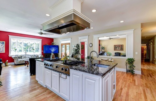 You will be able to see what I mean when you use this space, Chef's dream kitchen is open light bright- with lots of built-in features and wide open space for visiting, the kitchen is the heart of entertainment so we built ours with plenty of space together.