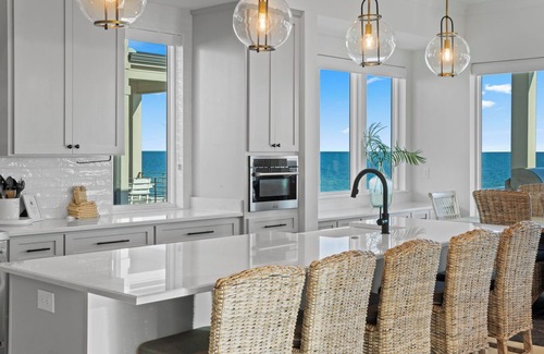 As you step inside, you're greeted by a beautifully designed interior featuring modern coastal décor. The spacious living areas are bathed in natural light, complemented by stylish furnishings and smart TVs in each room. Large windows and generous balconies showcase breathtaking views of the Gulf, inviting you to relax and unwind.