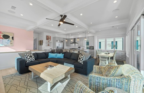 Additional amenities include private beach access for leisurely walks on the sandy shores and a bonus room with a pull-out sleeper sofa. Whether you're seeking a serene getaway or a place to host unforgettable gatherings, Lazy Fish promises a luxurious experience where every detail enhances your coastal retreat.