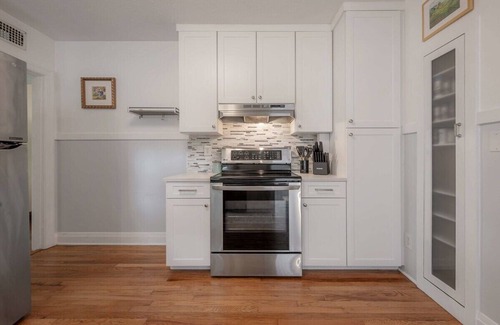 Immerse yourself in the sérénité of "The Stella Maris." Inspired by French coastal living, this charming three-bedroom historical cottage in Seminole Heights, Tampa, effortlessly blends historical architecture with modern conveniences. With two king beds, one full bed, a renovated kitchen, and a picturesque backyard complete with a bocce ball court, "The Stella Maris" offers a unique vacation experience that transports you to a 19th-century French coastal retreat in Tampa!