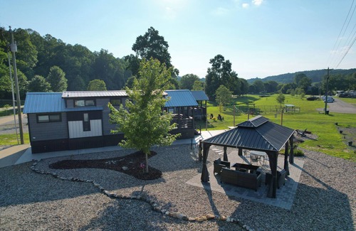 Tiny home mountain retreat w/view, covered outdoor patio, fire pit | House in Morganton