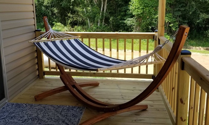 Hosted by proud US Navy veterans, we are delighted to welcome families visiting loved ones and travelers seeking a unique experience. Enjoy the perfect blend of tranquil country living, just 10 minutes from Downtown Columbus and 14 miles from Fort Benning. Our clean, clutter-free, and inviting 399 sq ft tiny home is designed for your comfort and relaxation.