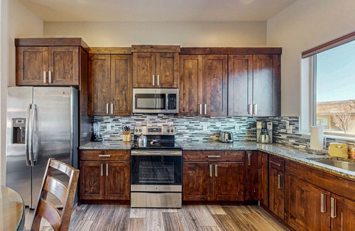 Tranquility, national parks, and the beauty of the Utah desert are waiting for you at this stylish Moab home. Offering views of Moab Rim and the La Sal mountains, a bubbling private hot tub, overflow parking, and all of the comforts of home, you won't want to pass this one by!