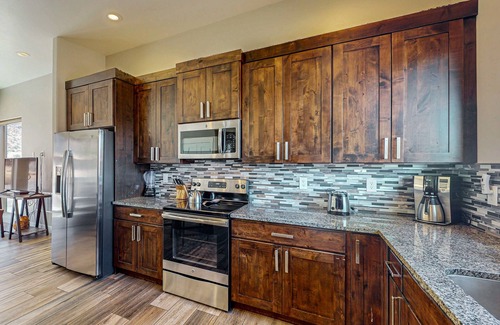 Kick off the dirt from the trails and lounge in the central AC after a long day out in the sun! You'll enjoy amenities like cable TV, Netflix streaming, free WiFi, a private washer/dryer, well-appointed kitchen, and a patio, not to mention a private hot tub for easing your sore muscles. There's even a queen-size bunk bed for some R&R.