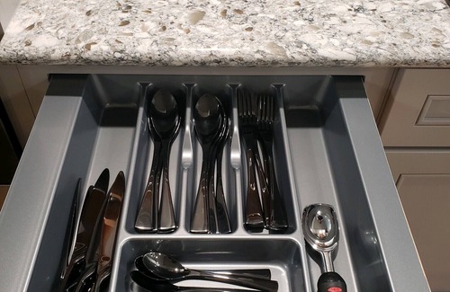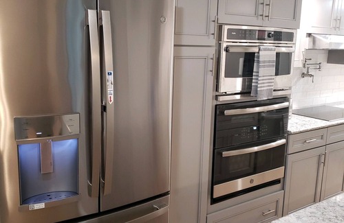 1) Kitchen. This includes utensils such as forks, knives, spoons, plates, cups, etc. As well as Top-Of-The-Line GE microwave, oven, countertop stove, ice maker, and refrigerator.