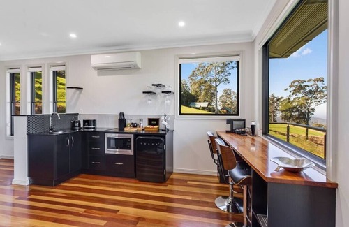 Sit on the balcony in summer or indoors in winter around the cosy log fire. Watch the mist in the valleys in the morning while perched eagle-high above the trees at the breakfast bar while sipping an expresso coffee. The private spa affords the same view while you enjoy a glass of your favourite wine. Tranquillity is what you will feel and remember.
