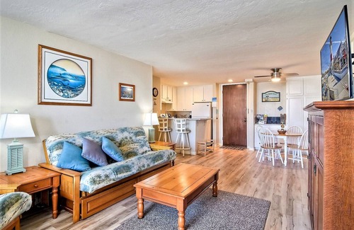 Step into your private beach condo; your home away from home at North Coast Village Resort with 12 acres of lush Hawaiian tropical walkways that are fully protected along with 24/7 security in the resort. This beach home sits at the second floor level with views from your private patio to the Pacific Ocean surf and to the Oceanside Boat Harbor. It can easily sleep four with an additional play pen and high chair for the baby. The family room has 2 full size memory foam couches. Sit on the couches for daytime use, pull one or both out into full size beds at nighttime. The Master bedroom has memory foam king size bed. All the bedding and pillows are provided. The entertainment center has flat screen cable TV, DVD player along with favorite family movie selections. There is a CD and blue tooth player with AM/FM for your music listening enjoyment. Turn on the fireplace with select timer and cozy up on the couch with a glass of wine or pull out a board game and get everyone playing and laughing. We have provided lots of entertainment for your relaxation and family fun. There is free Wi-fi for your laptop or smart phone to check messages and stay in touch with your family, friends and the outside world. The private Master bedroom has flat screen wall cable TV with 2 mirrored closets, and full dresser. You can relax and sleep the hours away with views to the ocean surf or get ready for a new day of exploration and adventure awaiting you around beautiful San Diego. The bathroom has shower/tub combination and new quartz sink; we supply towels for your shower and bath along with shampoo, conditioner and body soap; there are towels for the pool & Jacuzzi area and/or beach. The resort has a coin operated washer and dryer for our guests on the first floor and we supply the laundry soap in our closet. The elevators at the end of the hall can transport you to each floor; from our private assigned parking space to our 2nd floor landing. The resort parking garages even allow your family and friends visiting to park in assigned spaces for a 24 hour period.