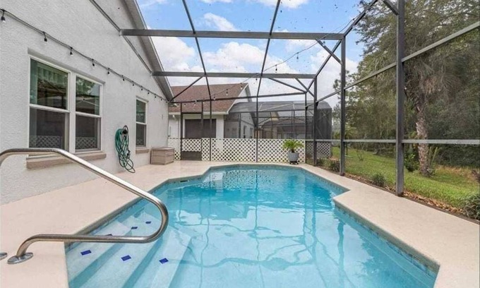 Private Pool and Sun Deck outside with wonderful views of some natural Florida landscape.