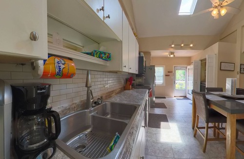 This house offers 3 bedrooms, plus an additional sleeper sofa to comfortably sleep 7 adults, 1.5 bathrooms, fully fenced in backyard and plenty of off-street parking with easy access in and out of the driveway!