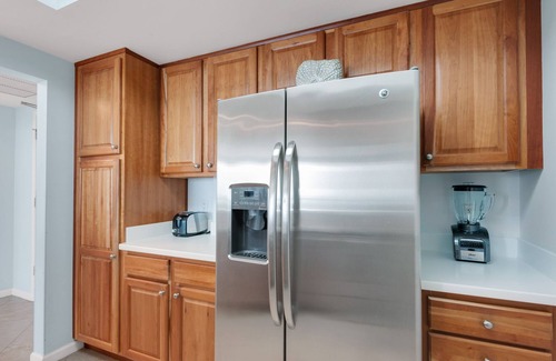 In the living room is a new 60" Samsung 4K Smart flat screen television with a beautiful blue, comfy queen sleeper sofa and 3 accent chairs. The fully equipped kitchen has new full-size stainless steel appliances, dishware, and cookware. The kitchen also a a new Keurig coffee maker and a programmable Mr. Coffee coffee maker. Just off the kitchen is a laundry room with a full-size GE washer and dryer.