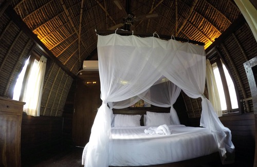 Made of wood and alang alang roof, makes the atmosphere of the room full of love and romantic. you will blend with nature and feel a warm and comfort.