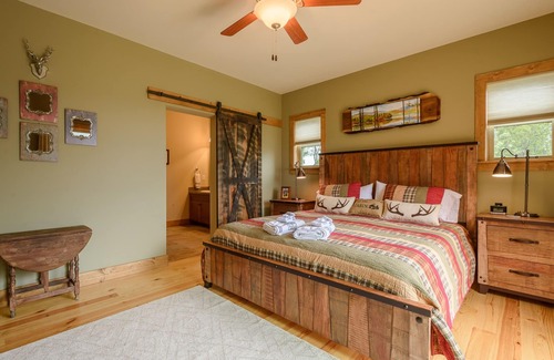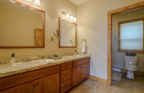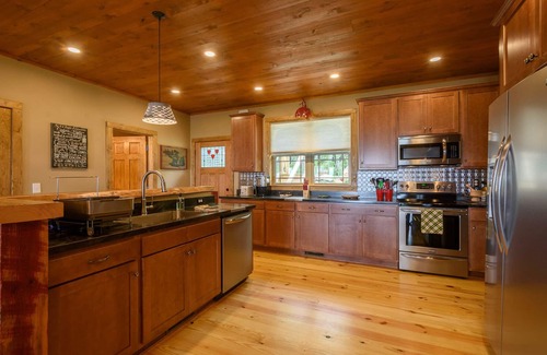 This home has stainless steel appliances, tile work, hardwood floors, and comfortable furniture. Relax on the decks, soak in the hot tub, or lounge in the ample seating while enjoying the view. You will find the gas grill and seating area ideal for outdoor dining. The kitchen has an excellent selection of dishes, glassware, cookware, and bakeware. Adjacent to the front porch is a large fenced dog run. There are two master suites on the main floor and a four-bed bunk room downstairs. There are two 60-inch Smart TVs with YouTube TV with NFL Sunday Ticket for football fans. HULU, Netflix, and Prime Video are also provided.