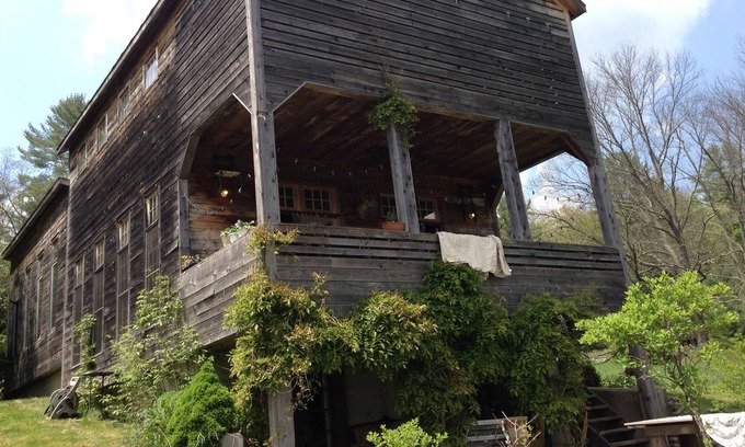 93-acre private art site deep in the woods with no close neighbors . Large lodge-like main building. Dozens of art project outbuildings and antique collections. Historic old homestead. Large rustic barn with media entertainment. Clean swimming pond.