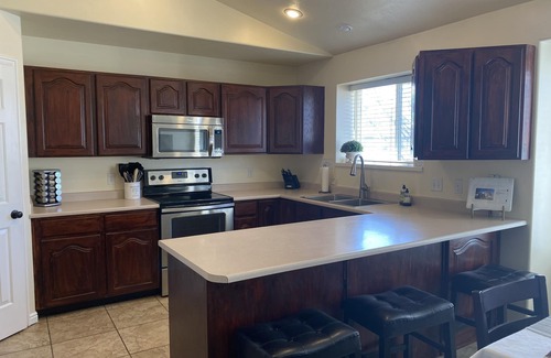 This inviting West Jordan home boasts plenty of room for a comfortable stay and is a very safe and quiet neighborhood.