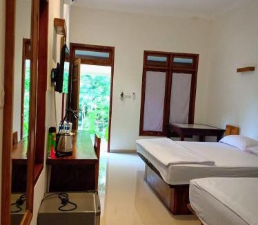 Located a few steps from Pulau Merah Beach, Villa Mertua Pulau Merah provides accommodations with a garden, a shared lounge and a shared kitchen for your convenience. Fitted with a terrace, the units offer air conditioning and feature a flat-screen TV and a private bathroom with shower and free toiletries. A car rental service is available at the lodge. Banyuwangi International Airport is 36 miles away.