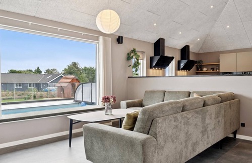 This luxurious holiday home in Hostrup near the Limfjord is perfect for large groups and families, accommodating up to 36 people just a short walk from the beach. With 10 bedrooms, 4 bathrooms, 2 lofts, and a fully equipped XL kitchen, it offers both comfort and space. Outside, you’ll find a heated saltwater pool, whirlpool, sauna, and pizza oven – ideal for year-round relaxation. The garden features a large playground, sports court, trampoline, and fire pit, while the activity room includes games, a bar corner, and PlayStation 5s. Nearby, enjoy beaches, kayaking, fishing, and attractions like Spøttrup Castle and Jesperhus. The home runs on solar and wind energy – luxury and sustainability combined.Please note that this VillaVilla house may not be rented by youth groups.