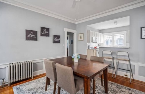 This apartment has lots of character and offers 3 bedrooms, 2 with comfy Queen size beds. Our best kept secret is right off of the living room through quaint French doors, its our Sunlight filled 3rd bedroom. This 3rd bedroom offers a twin size daybed with a twin size trundle bed underneath, both are extremely comfortable with memory foam mattresses. We offer free driveway parking for one car, plus free street parking as long as you are mindful of the street signs.