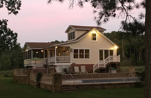 Ware Haven Cottage is located on the Ware River in Gloucester County, VA. - a 20-minute run by boat to the Chesapeake Bay. Enjoy quiet seclusion in a peaceful setting with 270-degree water views, while being only moments from fine dining and shopping in the historic Gloucester Courthouse area. Spend time outside quietly observing the family of bald eagles and other birds like osprey, blue herons, and cranes who nest on the grounds. You may also witness a small pod of dolphins enjoying a playful swim down the river.