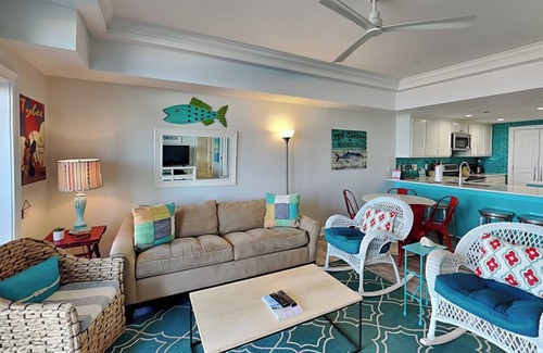 Step out onto your private balcony to enjoy your morning coffee with a view of the calm bay waters, or wind down with a sunset cocktail after a day in the sun. Inside, the open-concept living space is comfortably furnished and filled with natural light, with a full kitchen stocked for all your cooking needs, plus essentials like Wi-Fi, air conditioning, and Smart TVs.